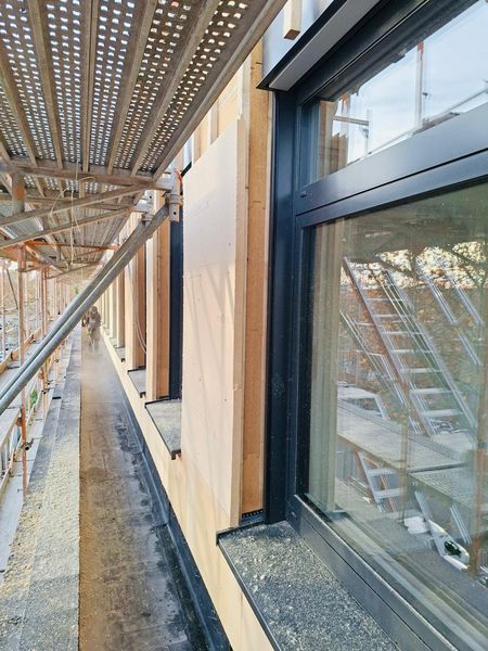 hier: Aufstockung und Erweiterung eines Bürogebäudes in vollem Gange.